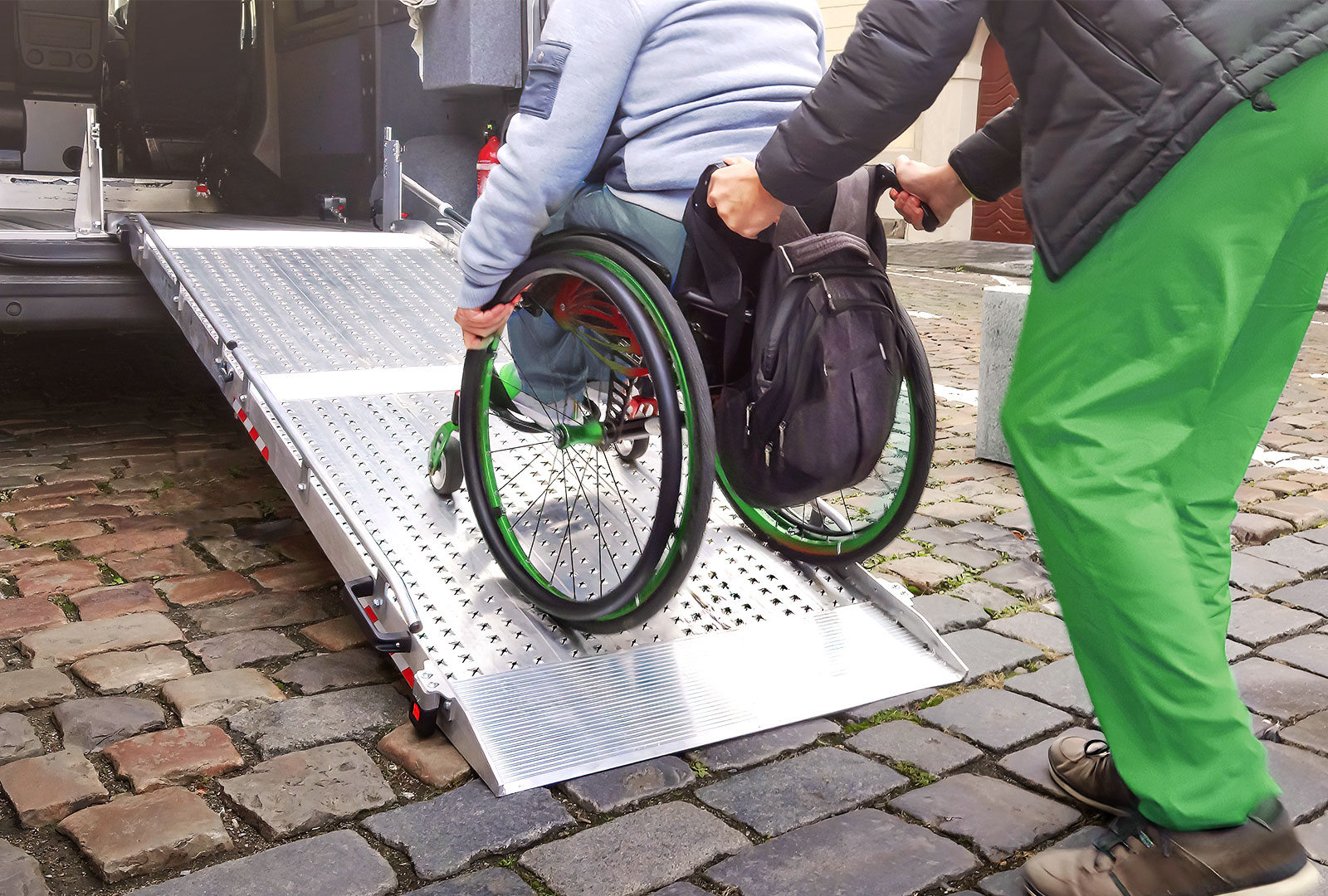 Mit speziell ausgestatteten Fahrzeugen und erfahrenen Begleitern ermöglichen wir Menschen mit Mobilitätseinschränkungen komfortable und sichere Fahrten. Rampen oder Lift sorgen für einfaches Ein- und Aussteigen, spezielle Befestigungssysteme für sicheren Halt während der Fahrt.